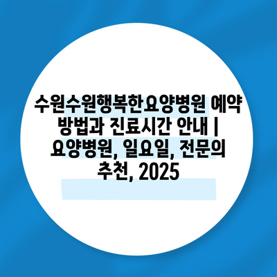수원수원행복한요양병원 예약 방법과 진료시간 공지 | 요양병원, 일요일, 전연락 추천, 2025 에 대해 자주 묻는 질문 TOP 5