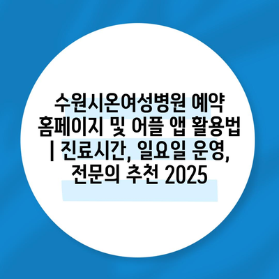 수원시온여성병원 예약 홈페이지 및 어플 앱 활용법 | 진료시간, 일요일 운영, 전연락 추천 2025에 대해 알아보겠습니다.