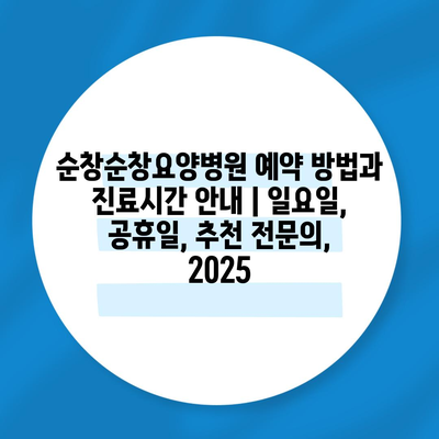 순창순창요양병원 예약 방법과 진료시간 공지 | 일요일, 공휴일, 추천 전연락, 2025