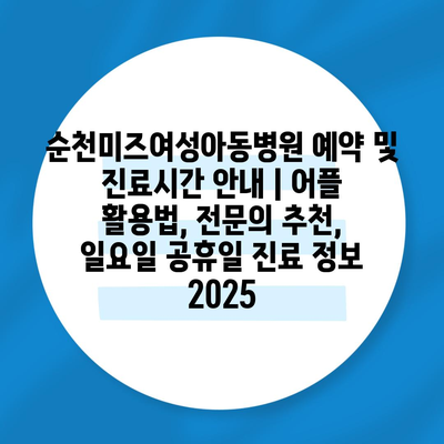 순천미즈여성아동병원 예약 및 진료시간 공지 | 어플 활용법, 전연락 추천, 일요일 공휴일 진료 정보 2025