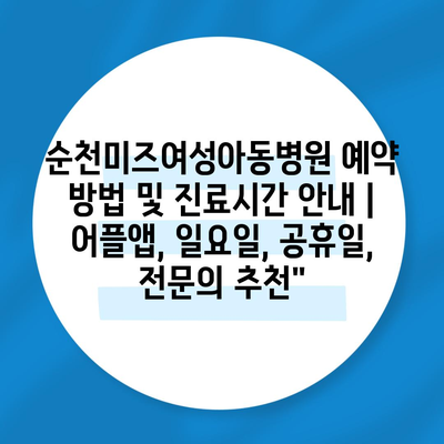 ✅ 순천미즈여성아동병원의 예약 방법을 자세히 알아보세요.