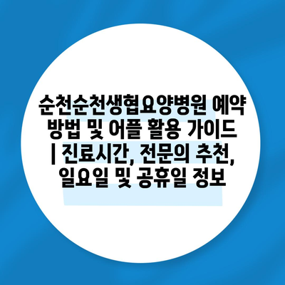 순천순천생협요양병원 예약 방법 및 어플 활용 설명서 | 진료시간, 전연락 추천, 일요일 및 공휴일 정보 에 대해 자주 묻는 질문 TOP 5