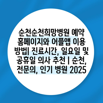 ✅ 순천희망병원 예약 방법을 자세히 알아보세요.