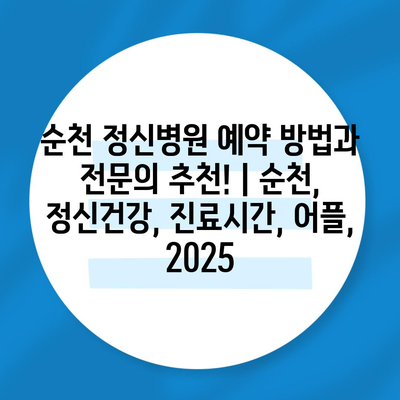 순천 정신병원 예약 방법과 전연락 추천! | 순천, 정신건강, 진료시간, 어플, 2025에 대해 소개합니다.