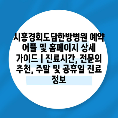 시흥경희도담한방병원 예약 어플 및 홈페이지 상세 가이드 | 진료시간, 전문의 추천, 주말 및 공휴일 진료 정보