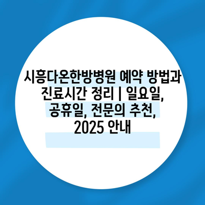 시흥다온한방병원 예약 방법과 진료시간 정리 | 일요일, 공휴일, 전연락 추천, 2025 공지 에 대해 자주 묻는 질문 TOP 5