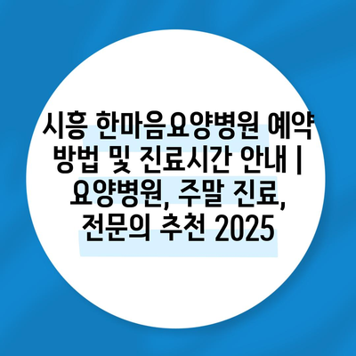 시흥 한마음요양병원 예약 방법 및 진료시간 공지 | 요양병원, 주말 진료, 전연락 추천 2025 에 대해 자주 묻는 질문 TOP 5