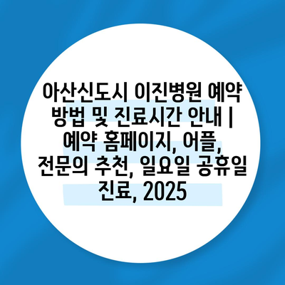 아산신도시 이진병원 예약 방법 및 진료시간 공지 | 예약 홈페이지, 어플, 전연락 추천, 일요일 공휴일 진료, 2025 에 대해 자주 묻는 질문 TOP 5