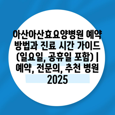 아산아산효요양병원 예약 방법과 진료 시간 설명서 (일요일, 공휴일 포함) | 예약, 전연락, 추천 병원 2025 에 대해 자주 묻는 질문 TOP 5