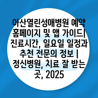 아산열린성애병원 예약 홈페이지 및 앱 설명서| 진료시간, 일요일 일정과 추천 전연락 정보 | 정신병원, 치료 잘 받는 곳, 2025에 대해 자주 묻는 질문 TOP 5