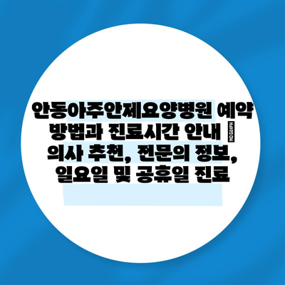 ✅ 안동아주안제요양병원의 예약 방법과 진료시간을 지금 바로 알아보세요!