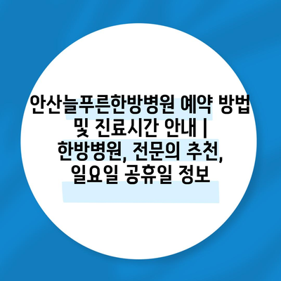✅ 안산늘푸른한방병원 예약 방법을 자세히 알아보세요.