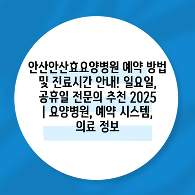 안산안산효요양병원 예약 방법 및 진료시간 공지! 일요일, 공휴일 전연락 추천 2025 | 요양병원, 예약 시스템, 의료 정보 에 대해 자주 묻는 질문 TOP 5