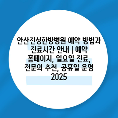 안산진성한방병원 예약 방법과 진료시간 공지 | 예약 홈페이지, 일요일 진료, 전연락 추천, 공휴일 운영 2025에 대해 알아보겠습니다.