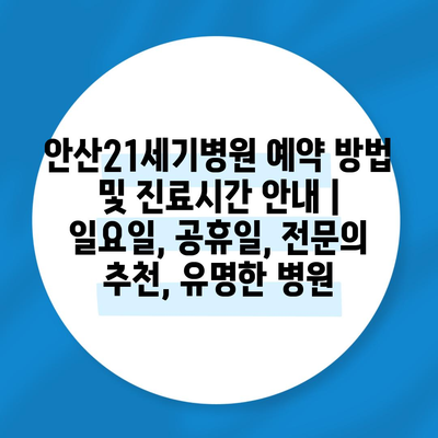 ✅ 안산21세기병원의 예약 절차와 진료 시간을 자세히 알아보세요.