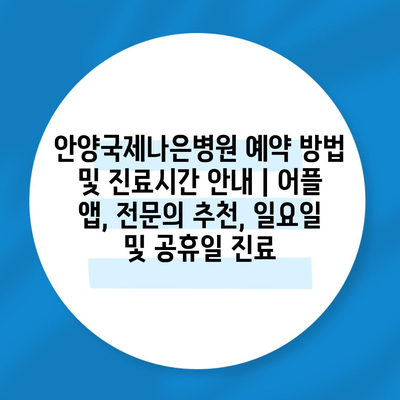 ✅ 안양국제나은병원의 진료시간과 예약 방법을 자세히 알아보세요.