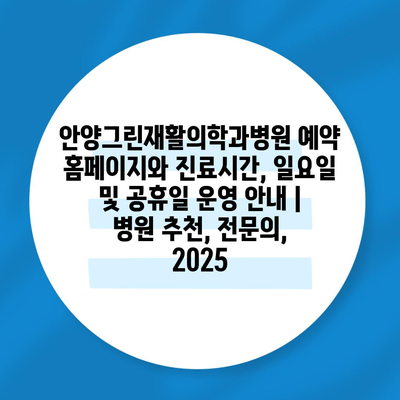 ✅ 안양그린재활의학과병원의 진료시간과 예약 방법을 지금 바로 알아보세요!