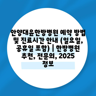 안양대윤한방병원 예약 방법 및 진료시간 공지 (일요일, 공휴일 포함) | 한방병원 추천, 전연락, 2025 정보 에 대해 자주 묻는 질문 TOP 5