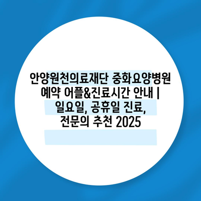 안양원천의료재단 중화요양병원 예약 어플&진료시간 공지 | 일요일, 공휴일 진료, 전연락 추천 2025 에 대해 자주 묻는 질문 TOP 5