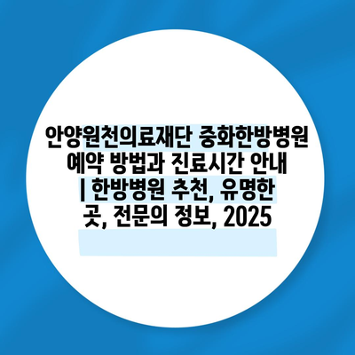 안양원천의료재단 중화한방병원 예약 방법과 진료시간 공지 | 한방병원 추천, 유명한 곳, 전연락 정보, 2025 에 대해 자주 묻는 질문 TOP 5