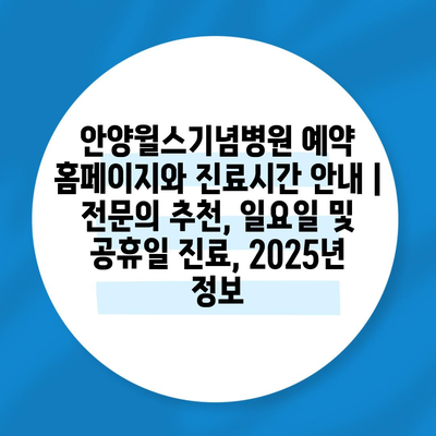 안양윌스기념병원 예약 홈페이지와 진료시간 공지 | 전연락 추천, 일요일 및 공휴일 진료, 2025년 정보 에 대해 자주 묻는 질문 TOP 5
