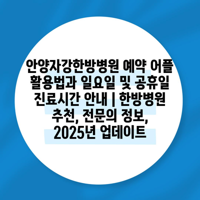 안양자강한방병원 예약 어플 활용법과 일요일 및 공휴일 진료시간 공지 | 한방병원 추천, 전연락 정보, 2025년 업데이트에 대한 내용을 소개합니다.