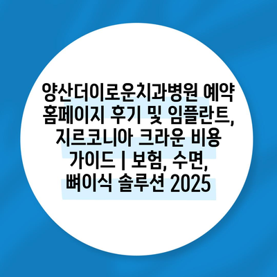 양산더이로운치과병원 예약 홈페이지 후기 및 임플란트, 지르코니아 크라운 비용 설명서 | 보험, 수면, 뼈이식 솔루션 2025에 대해 알고 싶다면 주목해 주세요.