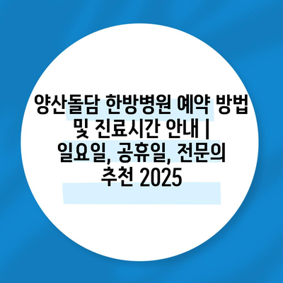 양산돌담 한방병원 예약 방법 및 진료시간 공지 | 일요일, 공휴일, 전연락 추천 2025 에 대해 자주 묻는 질문 TOP 5
