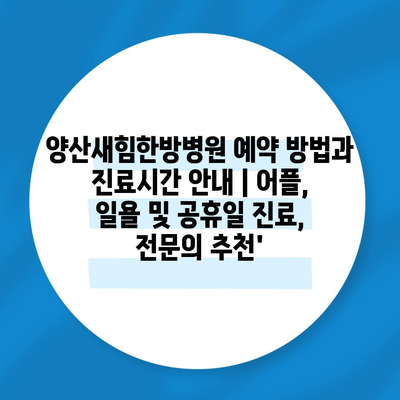 양산새힘한방병원 예약 방법과 진료시간 공지 | 어플, 일욜 및 공휴일 진료, 전연락 추천’ 에 대해 자주 묻는 질문 TOP 5