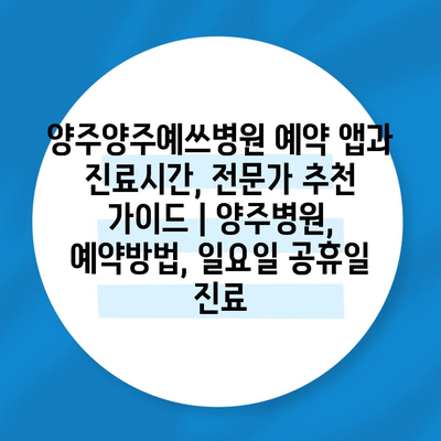 양주양주예쓰병원 예약 앱과 진료시간, 전문가 추천 설명서 | 양주병원, 예약방법, 일요일 공휴일 진료 에 대해 자주 묻는 질문 TOP 5