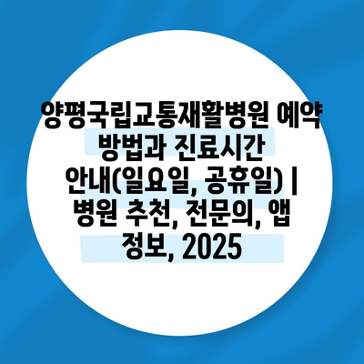 양평국립교통재활병원 예약 방법과 진료시간 안내(일요일, 공휴일) | 병원 추천, 전문의, 앱 정보, 2025