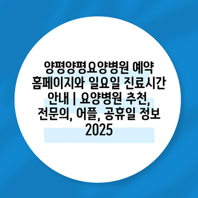 양평양평요양병원 예약 홈페이지와 일요일 진료시간 공지 | 요양병원 추천, 전연락, 어플, 공휴일 정보 2025에 대해 소개합니다.