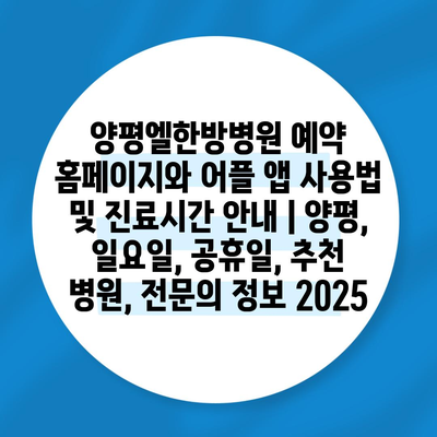 ✅ 양평엘한방병원의 예약 방법과 진료 시간 정보를 한눈에 확인해 보세요.