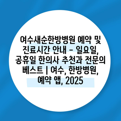 여수새순한방병원 예약 및 진료시간 공지 – 일요일, 공휴일 한의사 추천과 전연락 베스트 | 여수, 한방병원, 예약 앱, 2025
