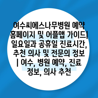 ✅ 여수씨에스나무병원의 진료시간과 주말 운영 정보를 알아보세요.