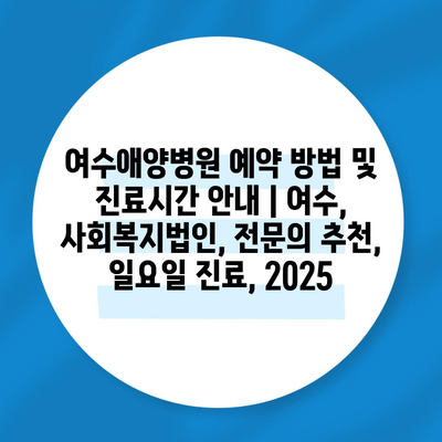 여수애양병원 예약 방법 및 진료시간 공지 | 여수, 사회복지법인, 전연락 추천, 일요일 진료, 2025 에 대해 자주 묻는 질문 TOP 5