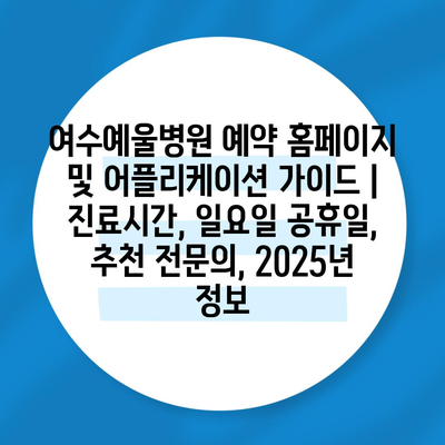 여수예울병원 예약 홈페이지 및 어플리케이션 설명서 | 진료시간, 일요일 공휴일, 추천 전연락, 2025년 정보 에 대해 자주 묻는 질문 TOP 5