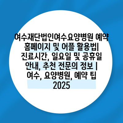 여수재단법인여수요양병원 예약 홈페이지 및 어플 활용법| 진료시간, 일요일 및 공휴일 공지, 추천 전연락 정보 | 여수, 요양병원, 예약 팁 2025 에 대해 자주 묻는 질문 TOP 5