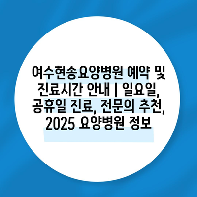 여수현송요양병원 예약 및 진료시간 공지 | 일요일, 공휴일 진료, 전연락 추천, 2025 요양병원 정보 에 대해 자주 묻는 질문 TOP 5