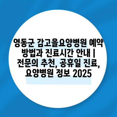 영동군 감고을요양병원 예약 방법과 진료시간 공지 | 전연락 추천, 공휴일 진료, 요양병원 정보 2025