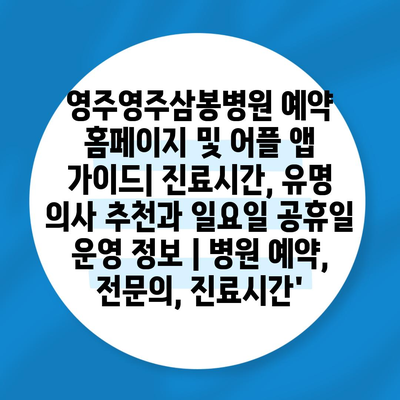 ✅ 영주삼봉병원 예약 방법과 운영 시간을 쉽게 알아보세요.