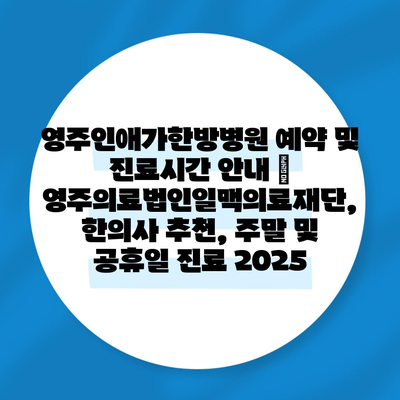 ✅ 영주인애가한방병원의 진료시간과 예약 방법을 알아보세요.