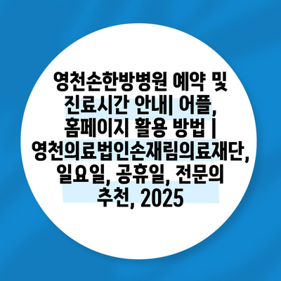 ✅ 영천손한방병원의 예약 방법과 진료시간을 자세히 알아보세요.