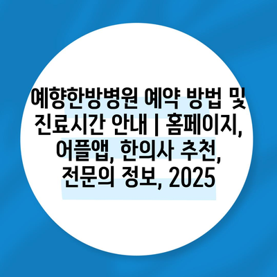 예향한방병원 예약 방법 및 진료시간 공지 | 홈페이지, 어플앱, 한의사 추천, 전연락 정보, 2025 에 대해 자주 묻는 질문 TOP 5