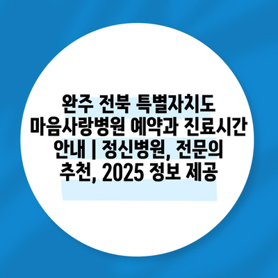완주 전북 특별자치도 마음사랑병원 예약과 진료시간 안내 | 정신병원, 전문의 추천, 2025 정보 제공