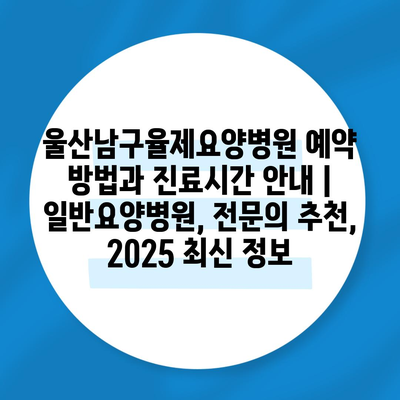 울산남구율제요양병원 예약 방법과 진료시간 공지 | 일반요양병원, 전연락 추천, 2025 최신 정보에 대해 자주 묻는 질문 TOP 5