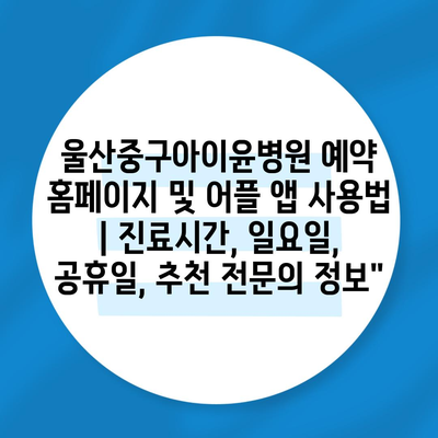 울산중구아이윤병원 예약 홈페이지 및 어플 앱 사용법 | 진료시간, 일요일, 공휴일, 추천 전연락 정보에 대해 자주 묻는 질문 TOP 5