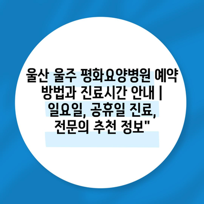 ✅ 울산 울주 평화요양병원의 예약 방법과 진료시간을 지금 바로 알아보세요!