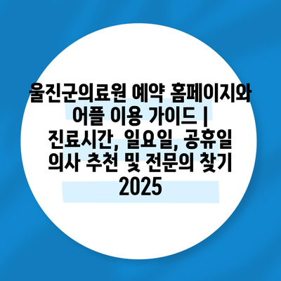 ✅ 울진군의료원 예약 시스템을 쉽게 활용하는 방법을 알아보세요.