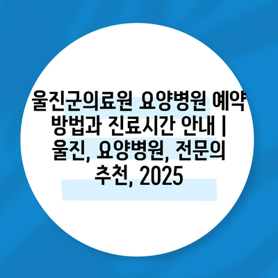 ✅ 울진군의료원의 예약 절차를 자세히 알아보세요.